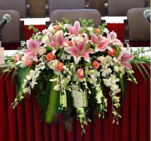 商品用途:適合慶典、會議、展會、主席臺花、演講臺花、下垂講臺花、簽到臺花、前臺花會議桌花、奠基儀式、新聞發布會、商品發布會等場合。