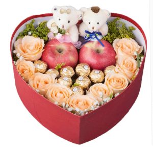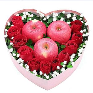 - E款玫瑰加蘋果心形禮盒