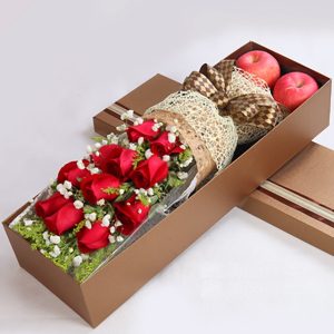 H款紅玫瑰鮮花禮盒:11朵玫瑰加2個蘋果。