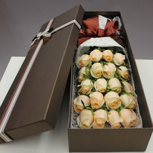 M款香檳玫瑰禮盒:19朵香檳玫瑰。