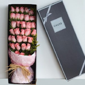 P款粉玫瑰花禮盒:33朵粉玫瑰。
