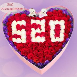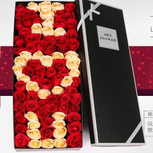 X款520字玫瑰禮盒:99朵玫瑰花520字體。