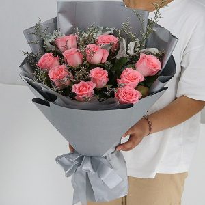 C款玫瑰花:11支粉玫瑰花束。