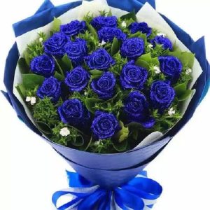 P款藍(lán)色妖姬:19支藍(lán)玫瑰加配花配草花束。