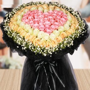 Y款玫瑰花:88支三色玫瑰心形花束。