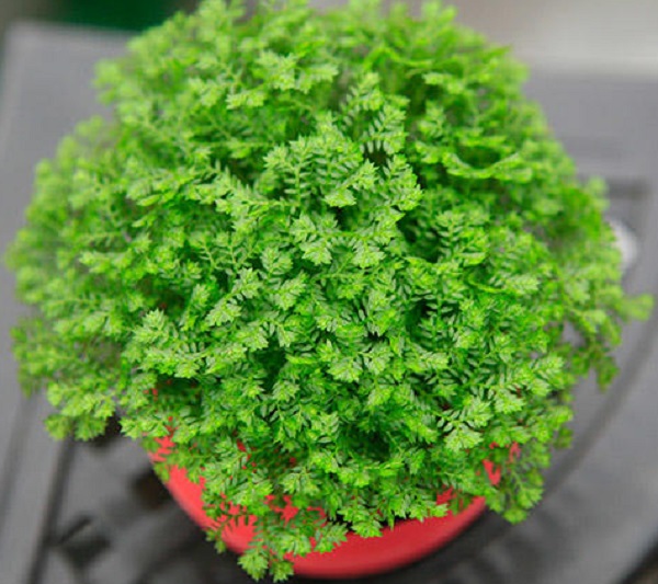 整株嫩綠色,枝干聚集叢生,高約10cm。是多年生常綠樹木本植物,呈站立狀,多發枝,有水草般清爽的覺得;顏色鮮綠,葉型精巧、討人喜歡,形狀亭亭玉立,具備神秘色彩;置放在電腦桌面,防電磁輻射的一起可以減輕視覺疲憊;凈化室內空氣的功效一樣不容忽視。在戶外大規模栽種很像綠毛毯,是這種高級的地被植物。