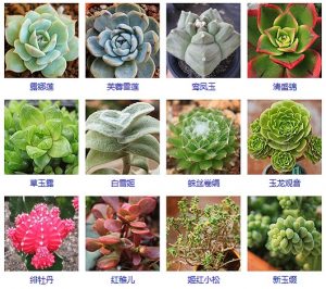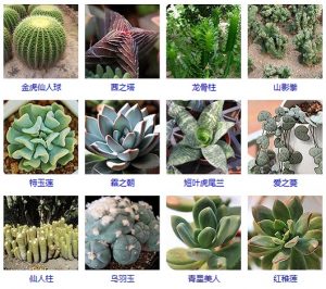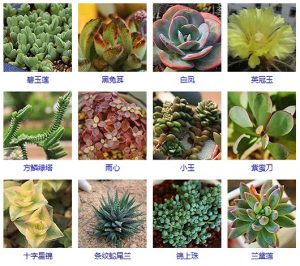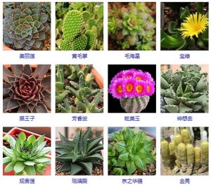 - 虎刺梅,雷神,金手指,仙人掌,曇花,仙人球,生石花,寶石花,蟹爪蘭,虹之玉,碰碰香,燕子掌