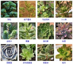 - 藍松,銀星,紫牡丹,明鏡,金紐仙人鞭,瓦松,彩云球,黃雪光,半島玉,燦爛綴化,白龍球,大葉蓮花掌