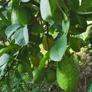香櫞,又名枸櫞。不規則分枝的灌木或小喬木。新生嫩枝、芽及花蕾均暗紫紅色,莖枝多刺,刺長達4厘米。單葉,稀兼有單身復葉,則有關節,但無翼葉;葉柄短,葉片橢圓形或卵狀橢圓形,長6-12厘米,寬3-6厘米,或有更大,頂部圓或鈍,稀短尖,葉緣有淺鈍裂齒。總狀花序有花達12朵,有時兼有腋生單花;花兩性,有單性花趨向,則雌蕊退化;花瓣5片,長1.5-2厘米;雄蕊30-50枚;子房圓筒狀,花柱粗長,柱頭頭狀,果橢圓形、近圓形或兩端狹的紡錘形,重可達2000克,果皮淡黃色,粗糙,甚厚或頗薄,難剝離,內皮白色或略淡黃色,棉質,松軟,瓢囊10-15瓣,果肉無色,近于透明或淡乳黃色,爽脆,味酸或略甜,有香氣;種子小,平滑,子葉乳白色,多或單胚。花期4-5月,果期10-11月。